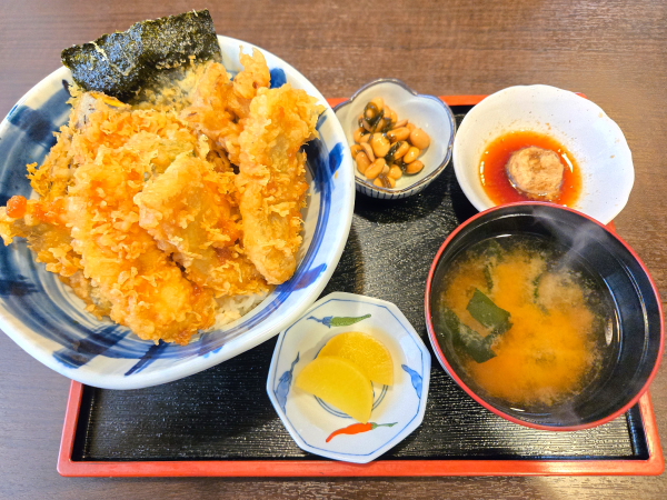 食べたかったのは「どんこ天丼」。どんこは外はサクッと内はホクっと美味しかったです。今度の納品はイツになるか楽しみにしております。