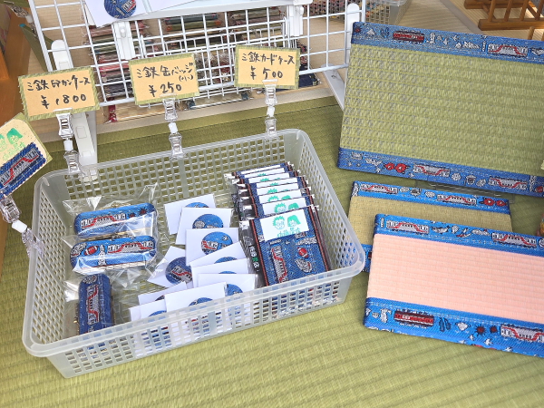 今年も三陸鉄道柄の畳縁を使用して作った畳グッズも販売しております。