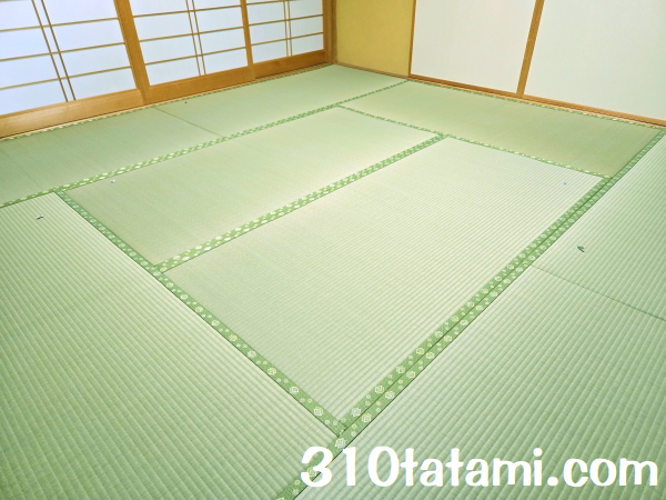 耐久性のあり見た目も綺麗な畳表。そして和風な部屋に似合う緑色系の和風柄の畳縁。