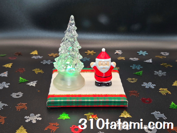 畳でもクリスマス気分を感じられるミニチュア畳を作りました。白色の畳表に赤と緑のテープを畳縁代わりに作って見ました。ここにサンタさんとツリーを置けば小さくクリスマス気分を感じられます。ん???畳じゃなくても良いんじゃない???そう言わずに。白色の畳もあるんですよ!お知らせしたかったんです(^^♪