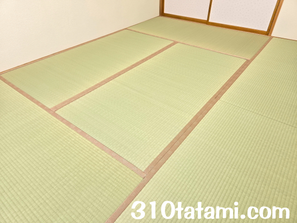 畳表の色は緑色ですが付ける縁の色によって部屋の雰囲気が変わりますね。濃い色だと引き締まった感じになり緑色だと畳表の緑色が引き立ちます。ピンク色だと柔らかい優しい雰囲気な部屋のなります。