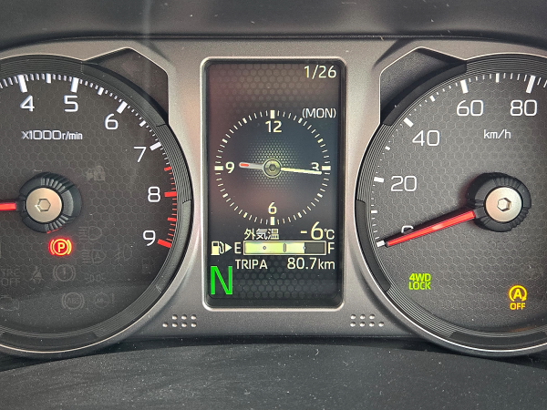 車の中は暖房で暖かいんですが外はマイナス6度と表示されてます。
