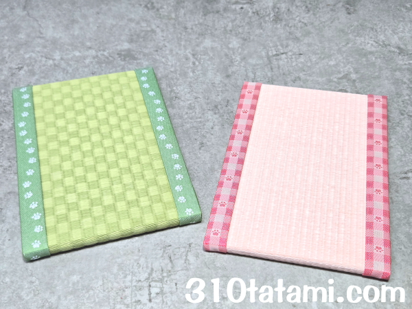 お客さんからのご依頼で肉球柄の畳縁を使用して可愛いミニ畳を2つ製作しました。