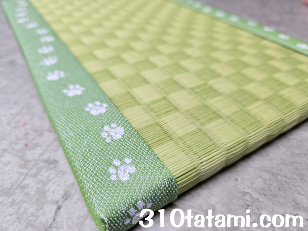畳表は銀白色の市松柄と畳縁はキッド肉球No135緑白色の組み合わせ。