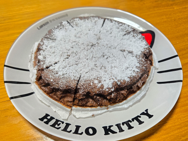 手作りチョコケーキです。濃厚でほろ苦さが丁度良いです。毎年ありがとうございます(^^♪