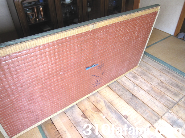 古くなり痛んだ畳縁と畳表(ござ)をはがして畳床の凹んだ部分や傷んである部分を補修をします。